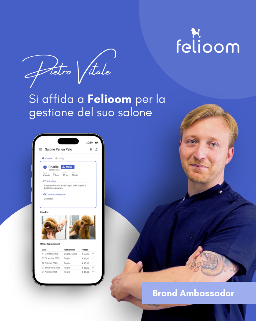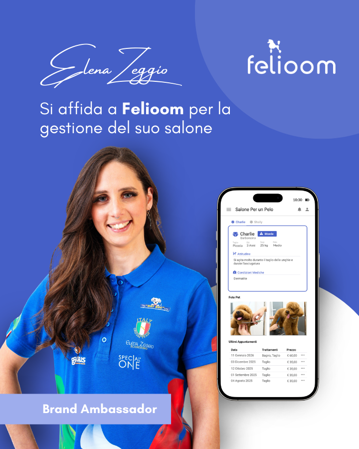 Una squadra di toelettatori esperti che condividono i nostri valori e rappresentano Felioom con orgoglio: Pietro Vitale, Elisa de Angeli ed Elena Zeggio